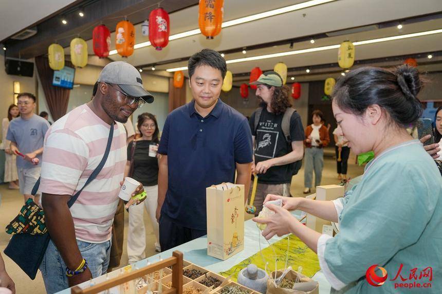 调研团成员体验中医“望闻问切”。人民网 王星摄